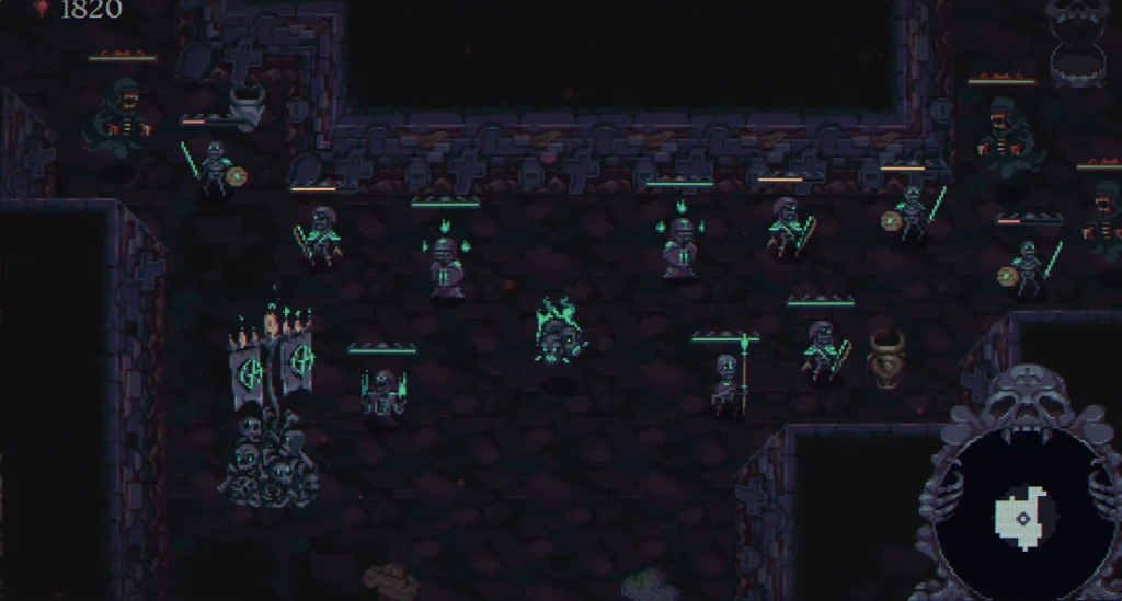 Геймплей проекта строится на двух столпах: управлении передвижением по лабиринту и стратегическом развитии своей армии. Вы не контролируете каждого скелета вручную — вместо этого вы определяете состав и мощь своего отряда, который сражается автоматически.