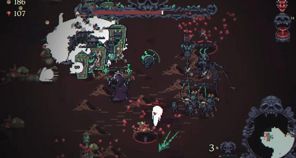 Сюжет в Skull Horde служит скорее атмосферным фоном для бесконечной экспансии. Вы — могущественный некромант, пробудившийся (или сосланный) в бесконечные глубины Подземелья Плоти. Цель проста: пробиваться через его слои, наращивая мощь своей неживой армии, чтобы противостоять тому, что ждет в самом сердце этого кошмара.