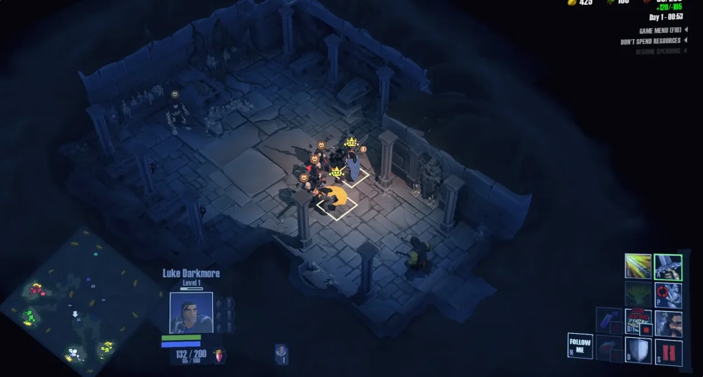 - Цикл «день-ночь»: днём вы ведете наступление и исследуете локации, а ночью отбиваетесь от жутких волн нежити, что добавляет драйва.